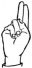 На ћирилици написано ЈАГОДА ДАНГУБИЋ састоји се из 14 слова [?]. Исписано ћириличном једноручном азбуком за глувонеме: